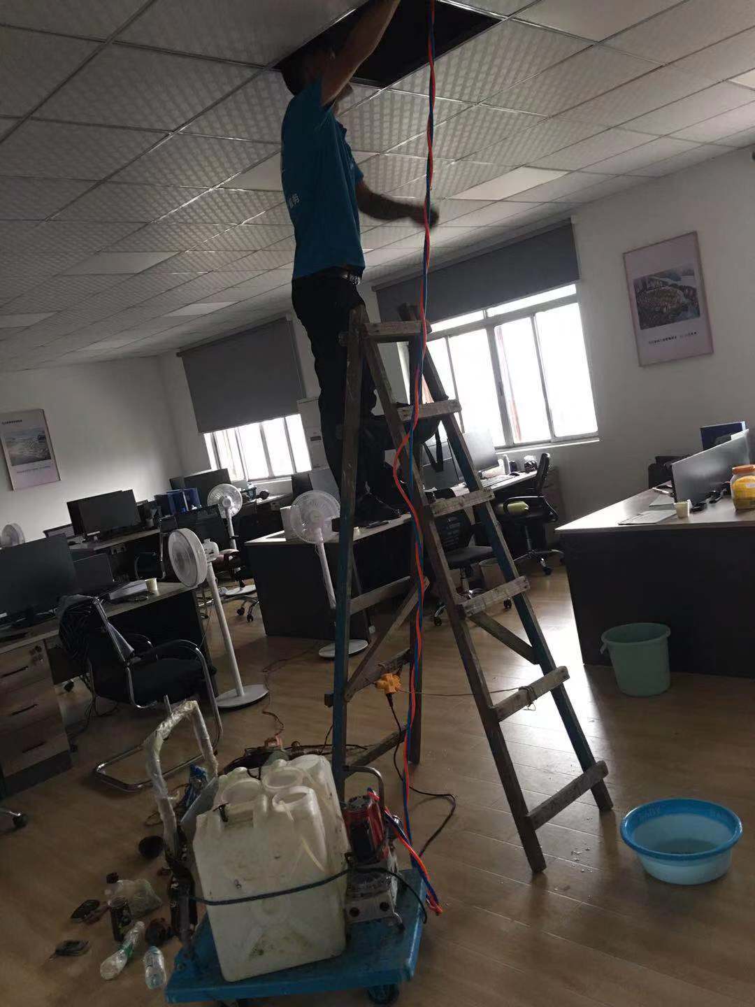用心服务是我们对承租户最好的承诺,2021年6月中旬,承租户向我司反映顶楼屋顶局部渗水,严重影响其正常办公。我司立即派人前往现场勘查,初步判断因屋顶屋面防水系统老化叠加顶楼江西铁塔公司通信设备用房下端积水严重造成。在我司地积极协调下, 6月21日,江西铁塔公司派出专业防水人员来现场施工解决了物业渗水问题,及时高效的物业管理赢得了承租户的青睐和信任。