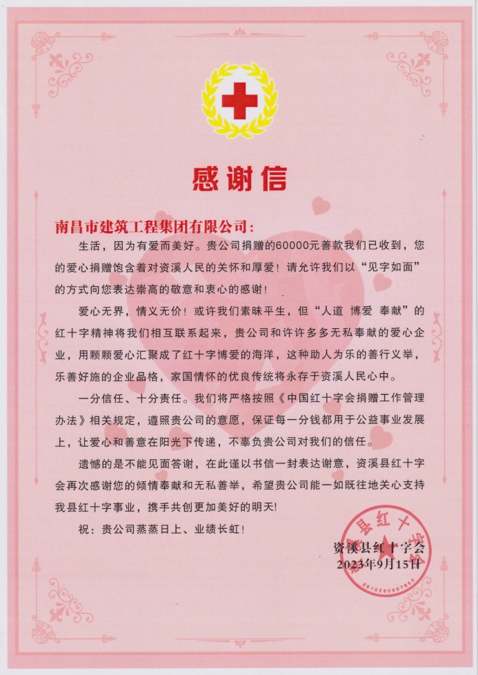多年来,公司在发展创新、创造经济效益的同时,始终不忘承担国企的社会责任,积极回馈社会,彰显大爱。未来,南昌建工将继续关注社会公益活动,用实际行动传递正能量!