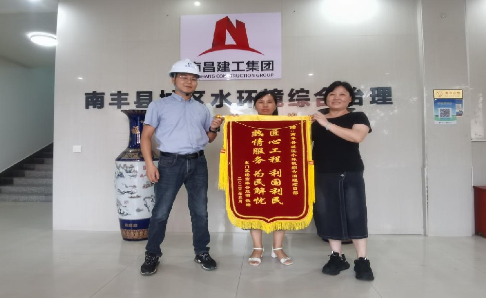 近日,南昌市建筑工程集团有限公司南丰县城区水环境综合治理项目部收到了东门菜场高粱谷烧酒商铺送来的锦旗,“匠心工程利国利民 热心服务 为民解忧”16个金色大字充分表达了对项目部兢兢业业施工、实实在在为民的感谢!南丰县琴城路雨污分流改造工程原计划3月1日开工,8月底完工。在制定施工计划时,项目部偶然...