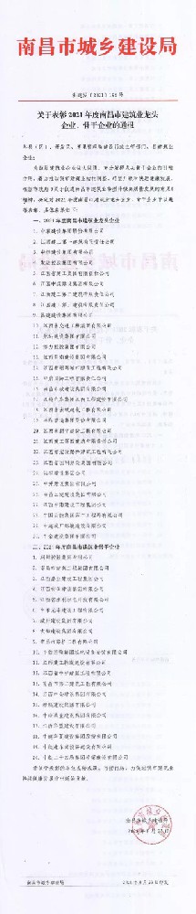为鼓励建筑业企业做大做强,充分发挥龙头骨干企业的引领作用。经南昌市城乡建设局批准我司荣获“2021年度南昌市建筑业骨干企业”,我司全体员工一定戒骄戒躁、再接再厉,为促进我市建筑业持续健康发展作出新的贡献。综合办公室人力资源部链接:关于表彰2021年度南昌市建筑业龙头企业、骨干企业的通报...