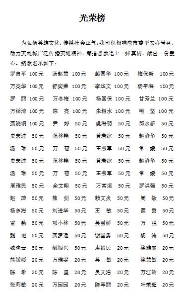 近日,我司工会、平安办积极响应全市开展见义勇为基金公开募捐活动号召,组织开展募捐活动。此次捐款活动,公司领导积极带头、作出表率,广大党员、干部职工踊跃参加,伸出援助之手,献出一份爱心,充分体现了我司干部职工传递温暖,奉献社会的公益之举。公司共募捐人民币4720元,全部转入见义勇为基金会账户。...
